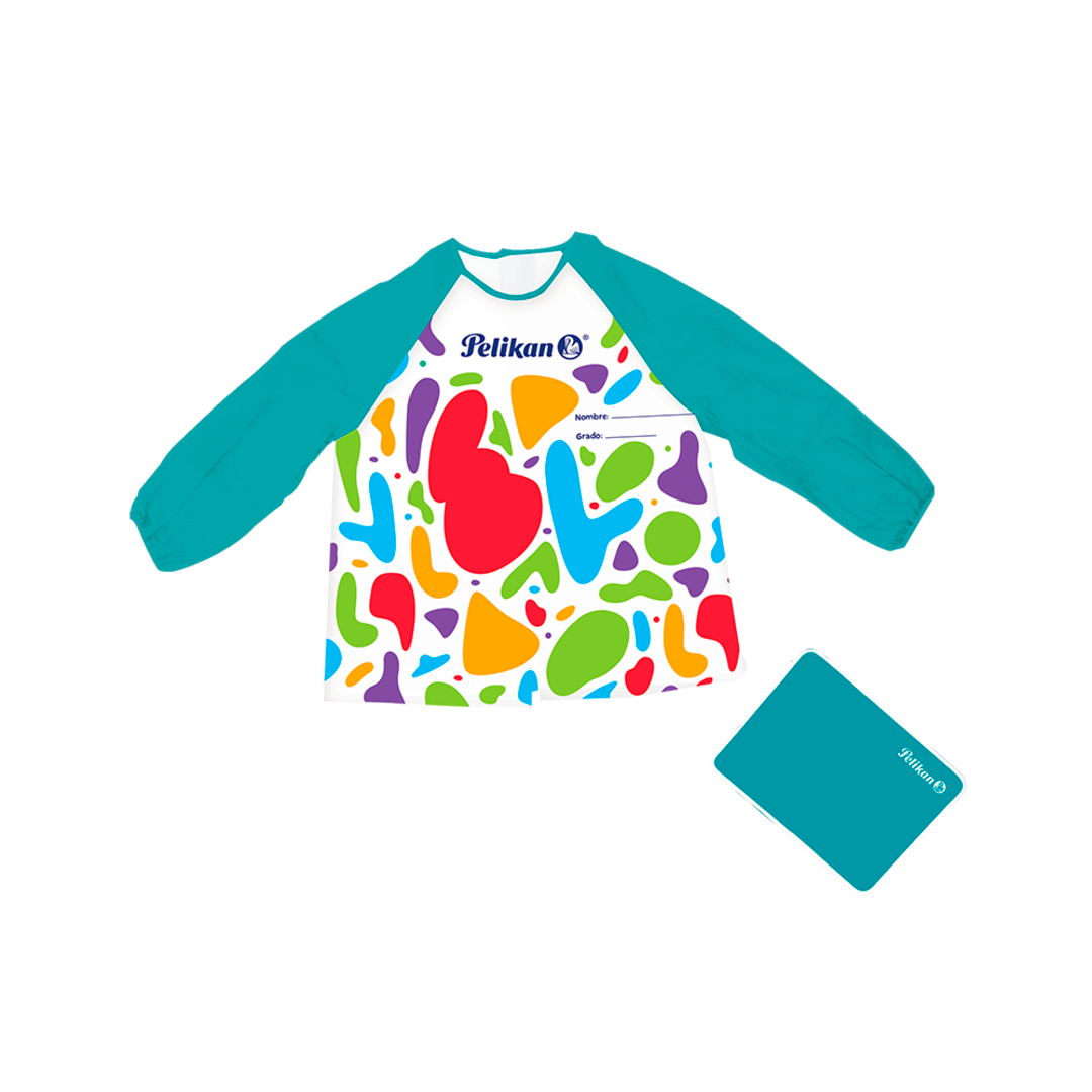 Bata de arte manga larga, para prevenir accidentes artísticos y no limitar la creatividad de los peques. Ideal para trabajar con acuarelas, crayones, plumones, plastilina, pinturas, pegamento, etc. La bata cuenta con un espacio visible para escribirlo e identificarlo.