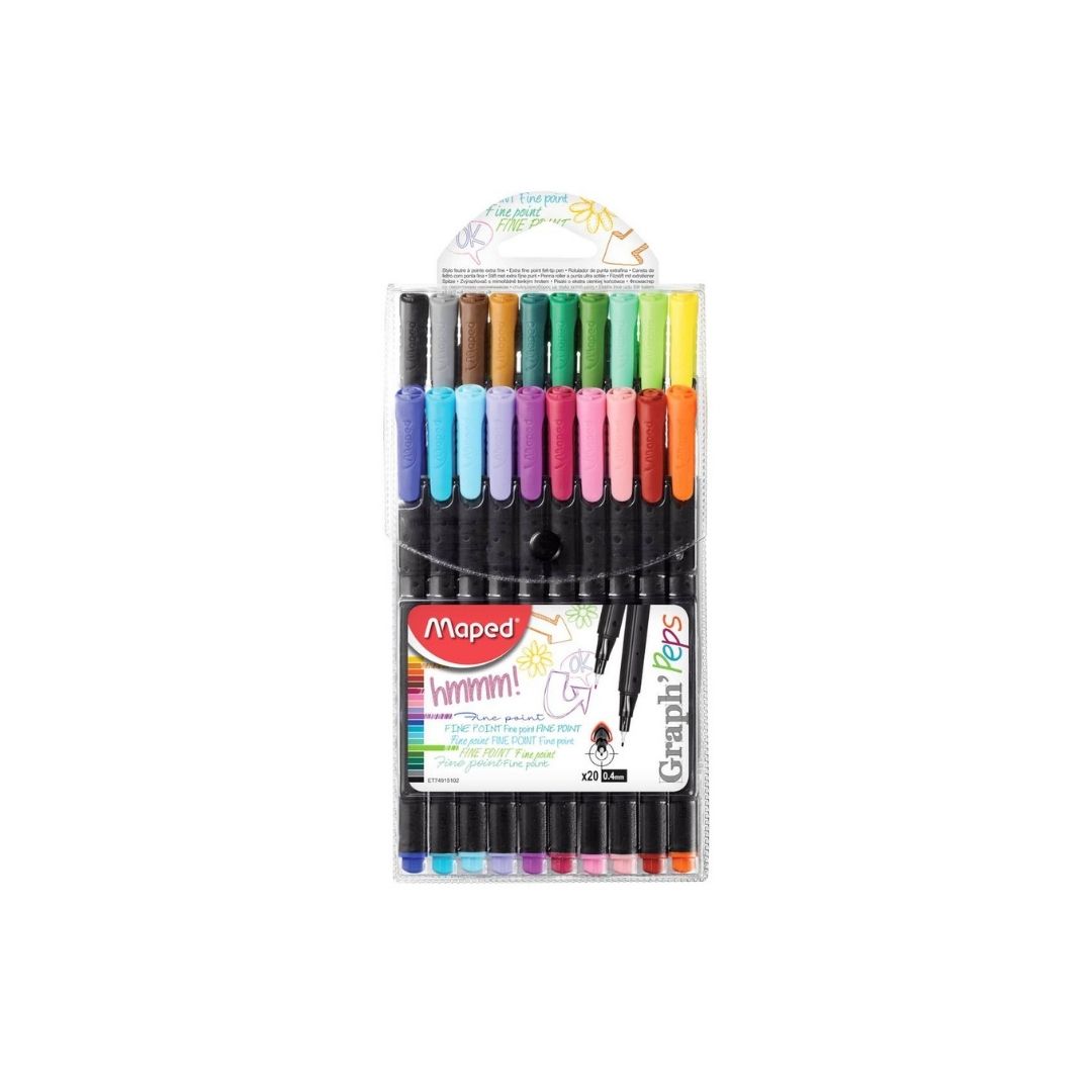 Los gráficos de punta fina Peps X20 son la opción ideal para agregar color y detalle a tus notas y cuadernos con precisión y estilo. Cada rotulador Graph'peps de Maped está equipado con una punta de 0,4 mm, robusta y de alta calidad debido a su construcción con punta de metal, asegurando trazos limpios y definidos.