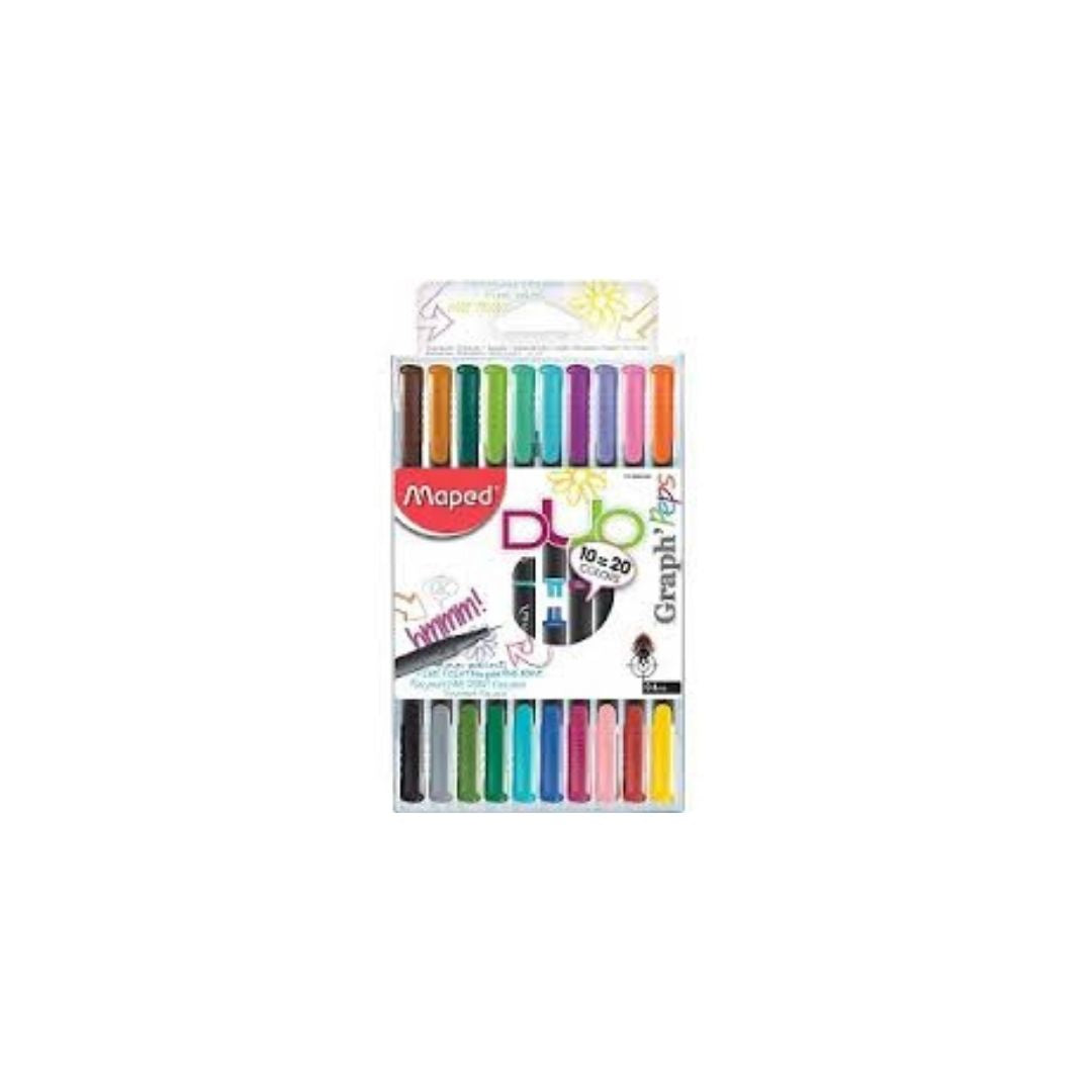 20 colores vivos disponibles con 10 rotuladores Duo!