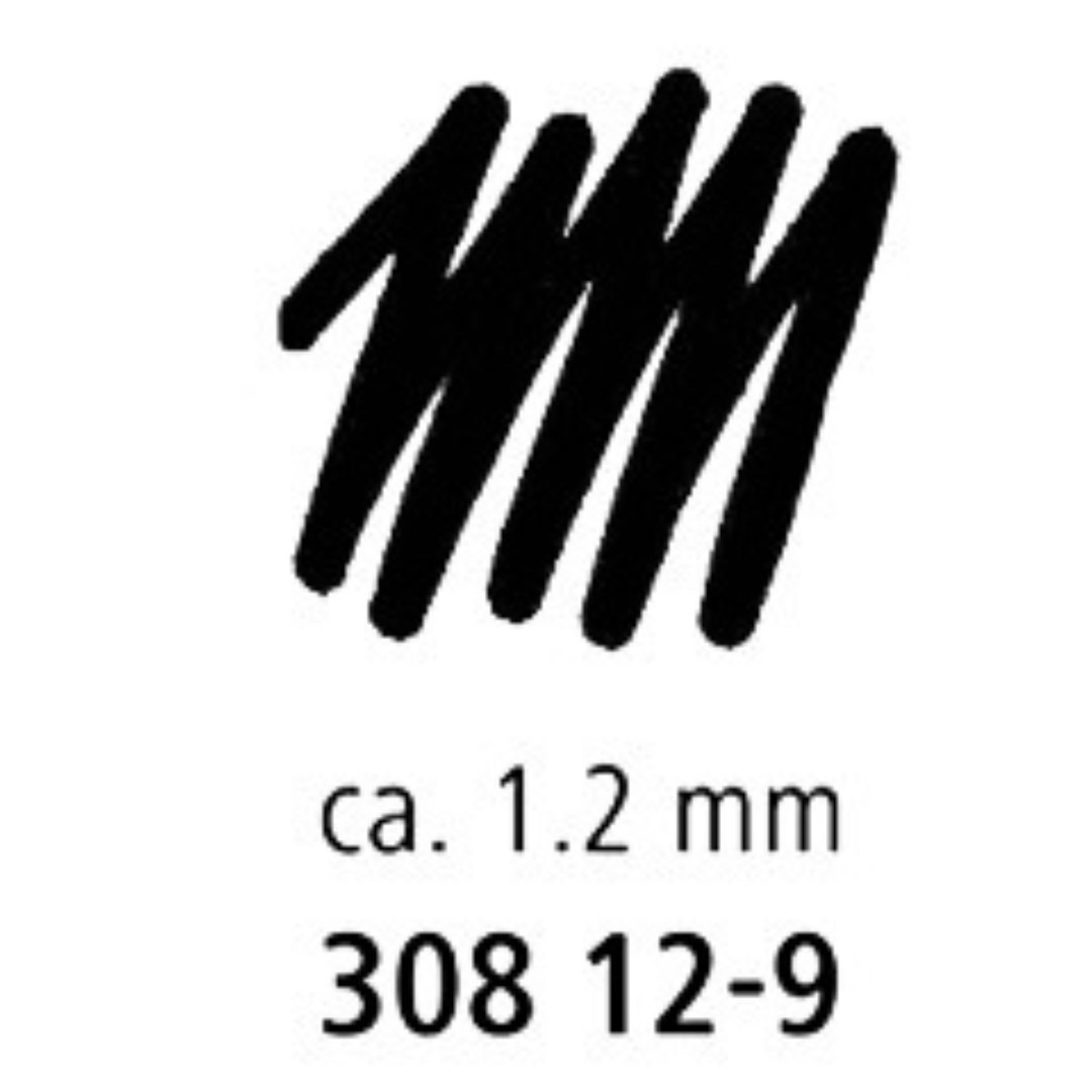 - Punta metálica larga, ideal para usar con plantillas (a partir de un ancho de línea de 0,1 mm) y reglas (a partir de un ancho de línea de 0,2 mm), p. ej. Mars 572 FL