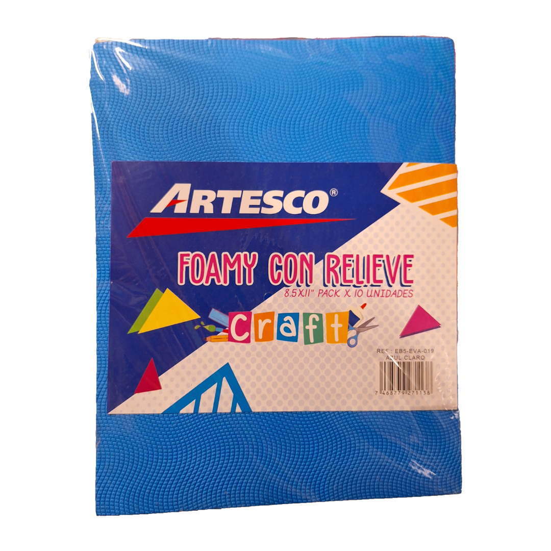 FOAMY ARTESCO C/RELIEVE (8.5 X 11) AZUL CLARO PAQ. 10