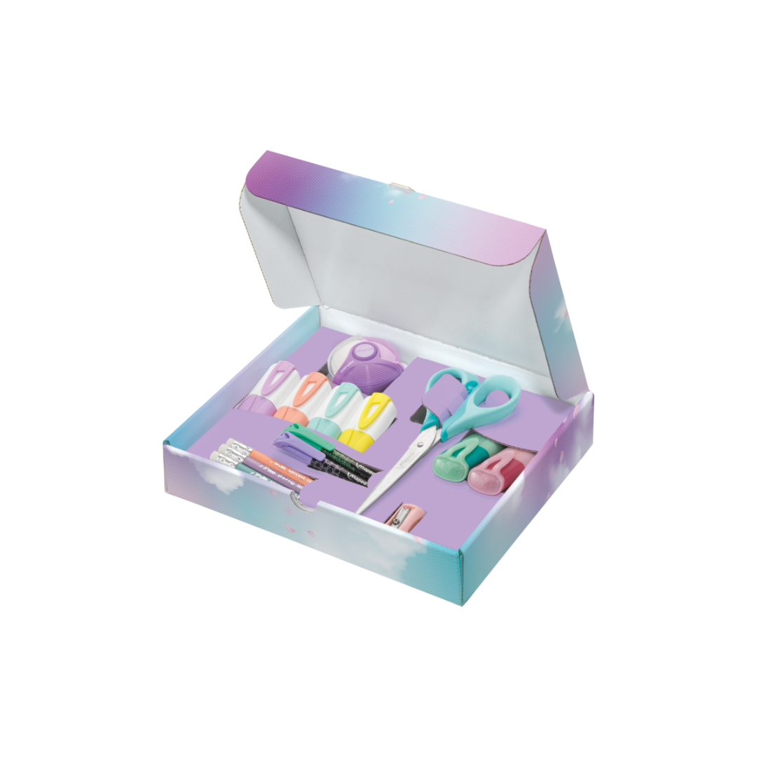 El juego de colorear definitivo, que incluye todo lo necesario para crear, dibujar, inventar, cortar, borrar y empezar de nuevo, ¡todo en tonos pastel! Una vez que el portalápices está armado, pueden guardar de forma ordenada todas sus herramientas para colorear.