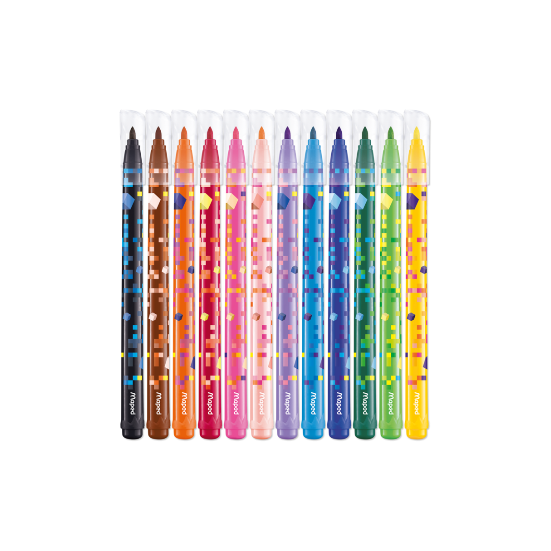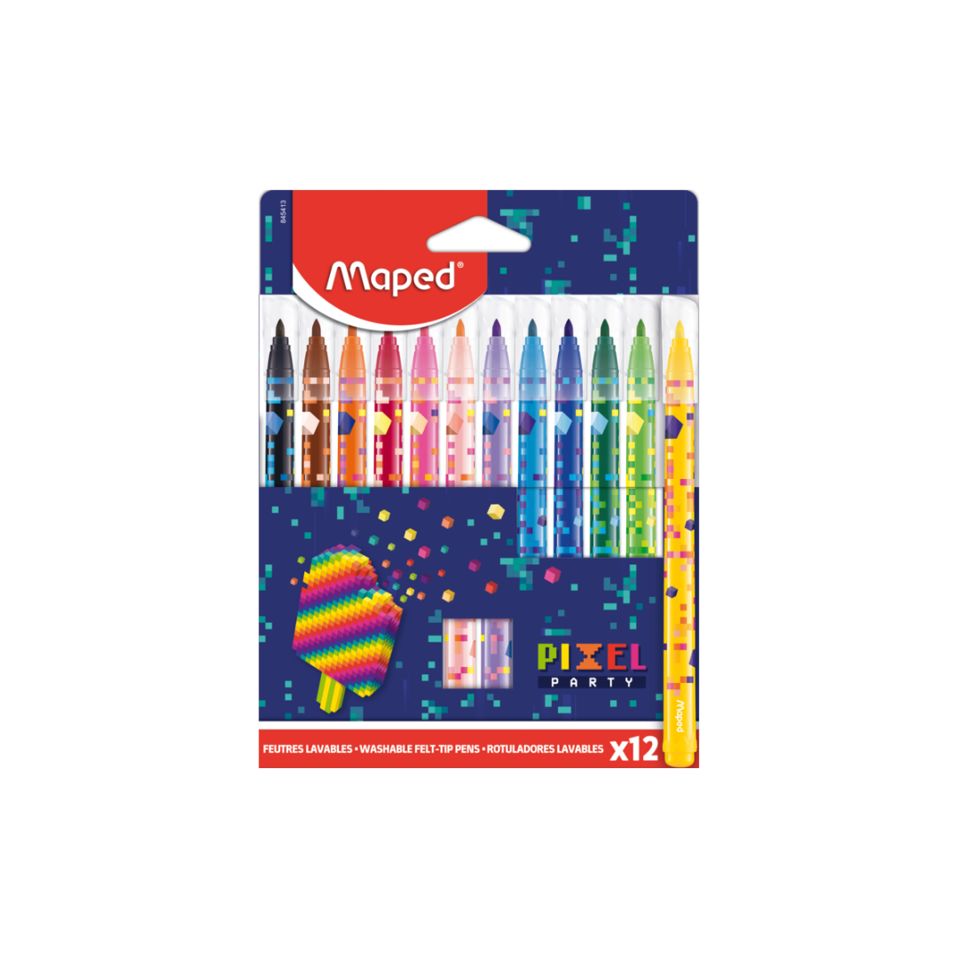 Sumérgete en un entorno retrofuturista inspirado en los códigos de los juegos con la nueva colección de Maped: Esta caja de cartón de 12 rotuladores pixelados encantará a niñas y niños por igual. ¡Su punta media y su tinta lavable los convierten en un gran aliado para el día a día! Con sus rotuladores de colores vivos y su decoración original, ¡tus compañeros de clase estarán deseando tener uno también!