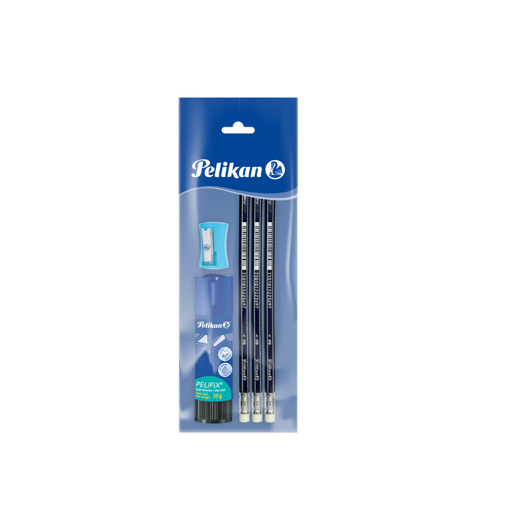 LAPICES #2HB AZUL 3/1 + PEGAMENTO 10GR + SACAPUNTA PAQ. 10