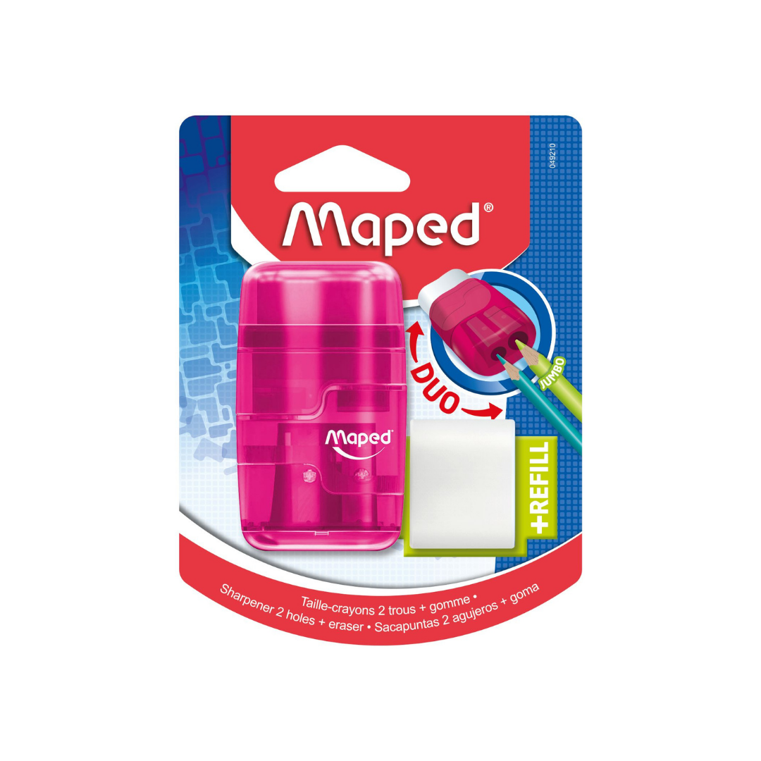 SACAPUNTAS 2 HOYOS C/GOMAS + REFILL CLEAR BLISTER PAQ. 24