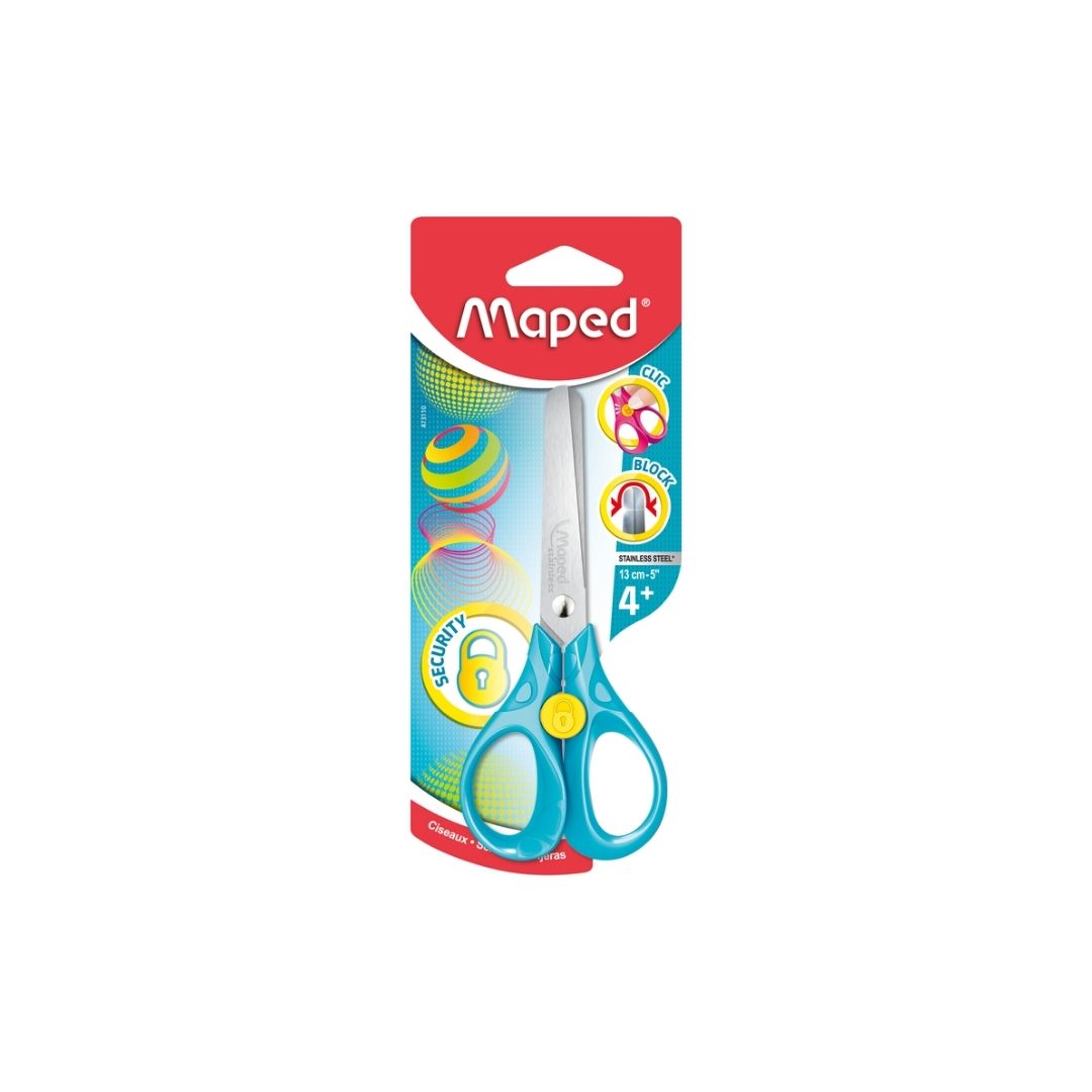Las tijeras de seguridad cuentan con un sistema de bloqueo de cuchillas único para mayor seguridad. Una vez enganchadas, las cuchillas permanecen cerradas. ¡Sin posibilidad de lesiones! La seguridad se mejora aún más con sus cuchillas de punta redondeada.