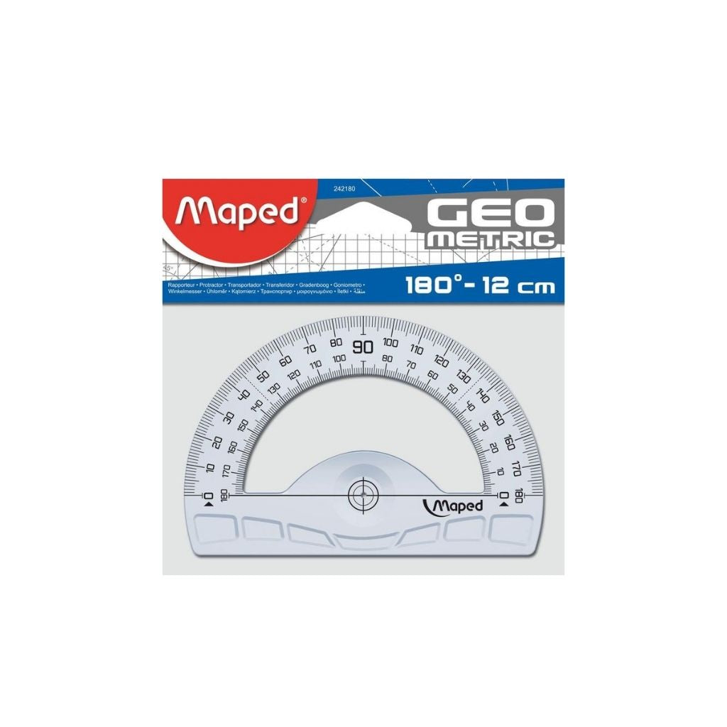 Experimenta la excelencia en diseño con el Transportador Geométrico 180/12CM, diseñado para proporcionar precisión sin igual en tus proyectos de dibujo y geometría. Este transportador combina un diseño ergonómico con un marcado de alta calidad, asegurando una lectura clara y precisa en cualquier ángulo.