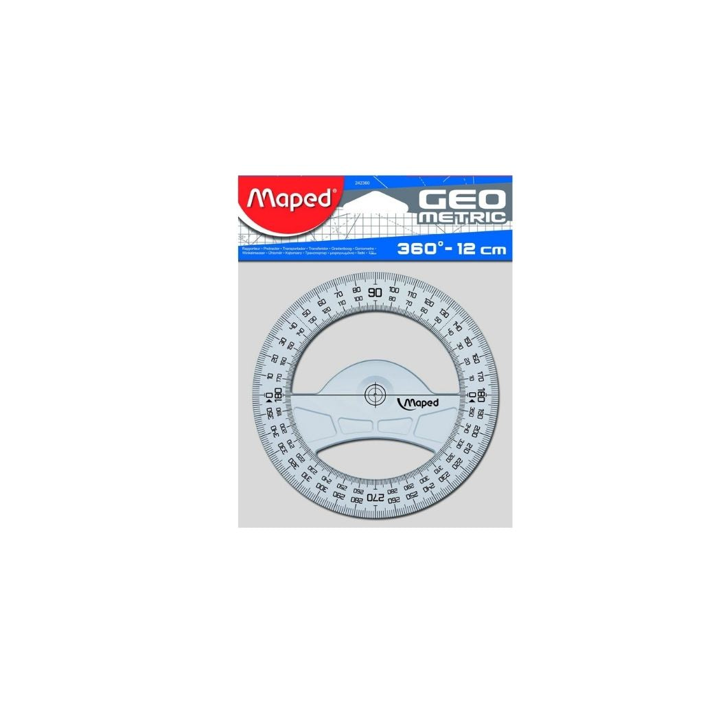 Experimenta la excelencia en diseño con el Transportador Geométrico 360/12CM, diseñado para proporcionar precisión sin igual en tus proyectos de dibujo y geometría. Este transportador combina un diseño ergonómico con un marcado de alta calidad, asegurando una lectura clara y precisa en cualquier ángulo.