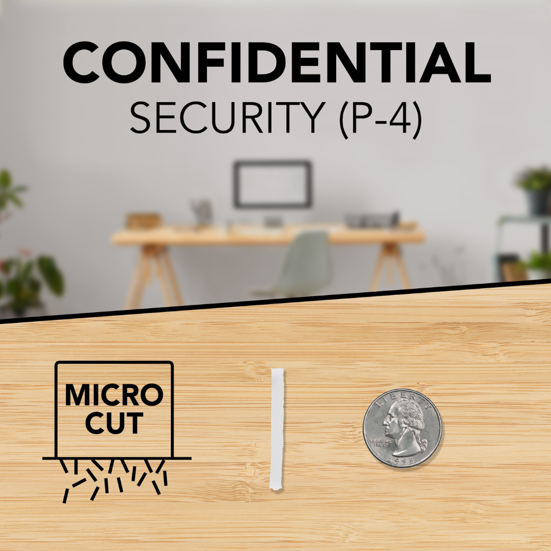 - Seguridad confidencial (Nivel P-4) para información comercial y personal sensible. Micro-Cut destruye documentos en trozos de 5/32" x 1 1/2".